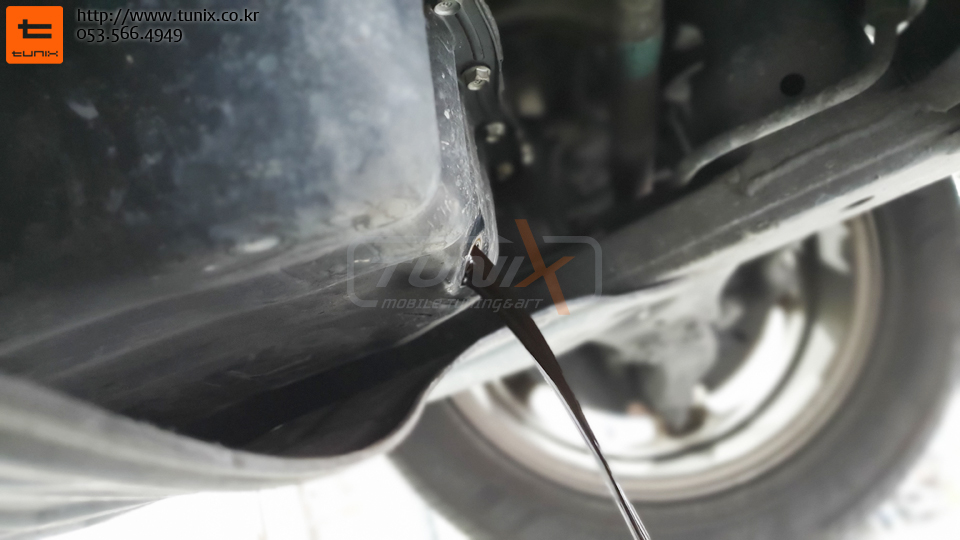 기존오일을 모두빼고 남아 있는 잔유는 전용드레인기를 이용하여 깔끔하게 제거해줍니다
