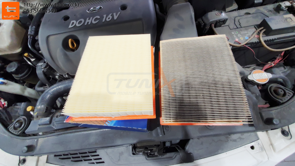 오염된 에어크리너를 신품으로 교체해줍니다..