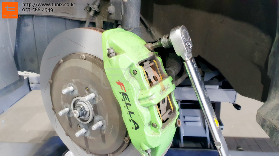 연마를 마치고 캘리퍼는 토크렌치를 사용하여 다시 장착해줍니다..^^