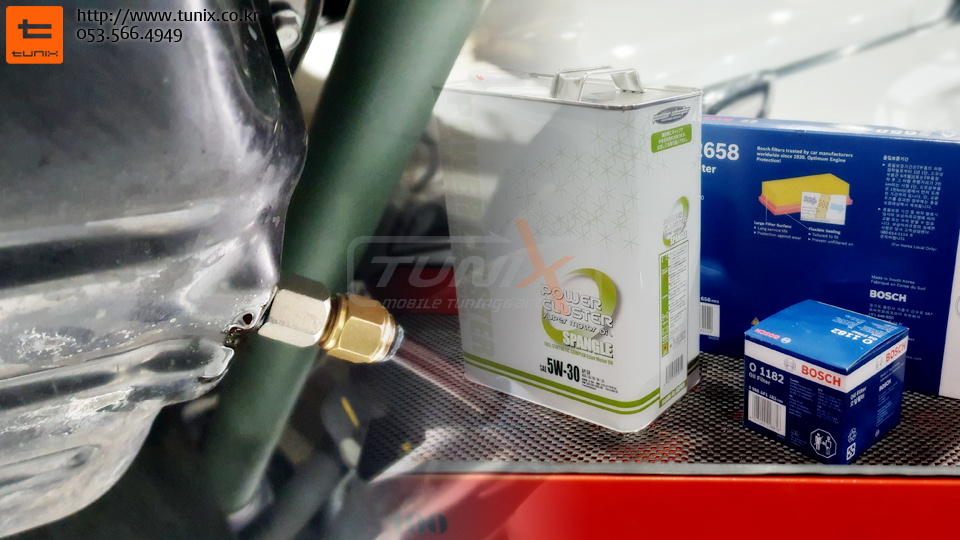 기존오일을 모두빼고 남아 있는 잔유는 전용드레인기를 이용하여 깔끔하게 제거해줍니다