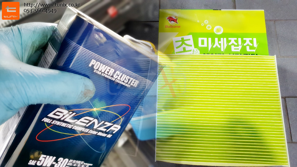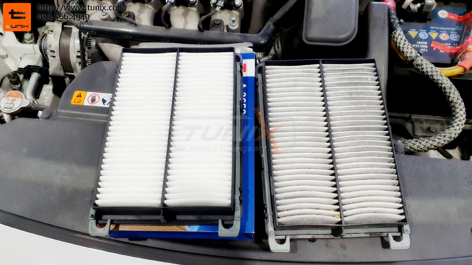오염된 오일필터와 에어크리너를 신품으로 교체해줍니다