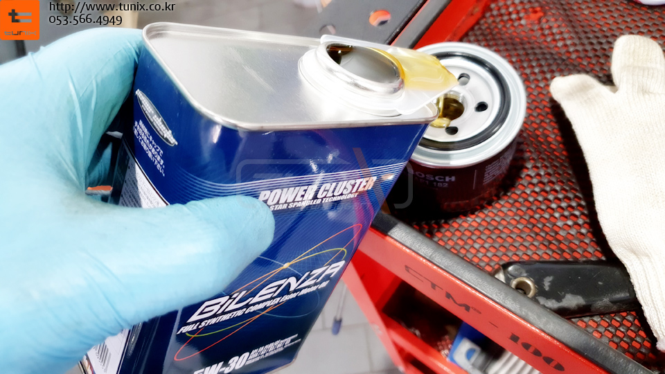 오일필터는 신유를 가득채줘서 교체해주었습니다.
