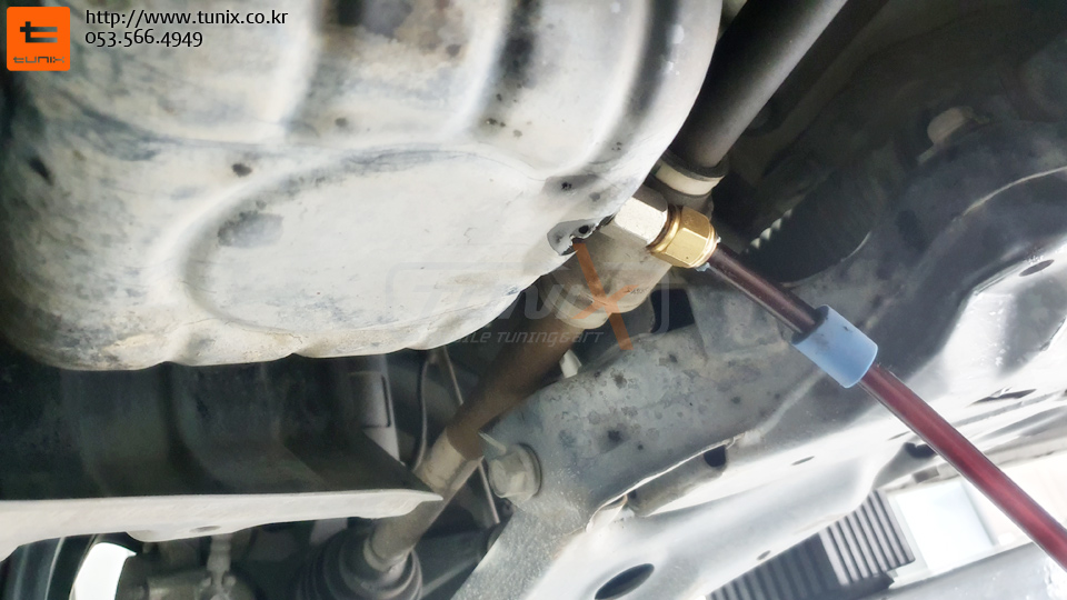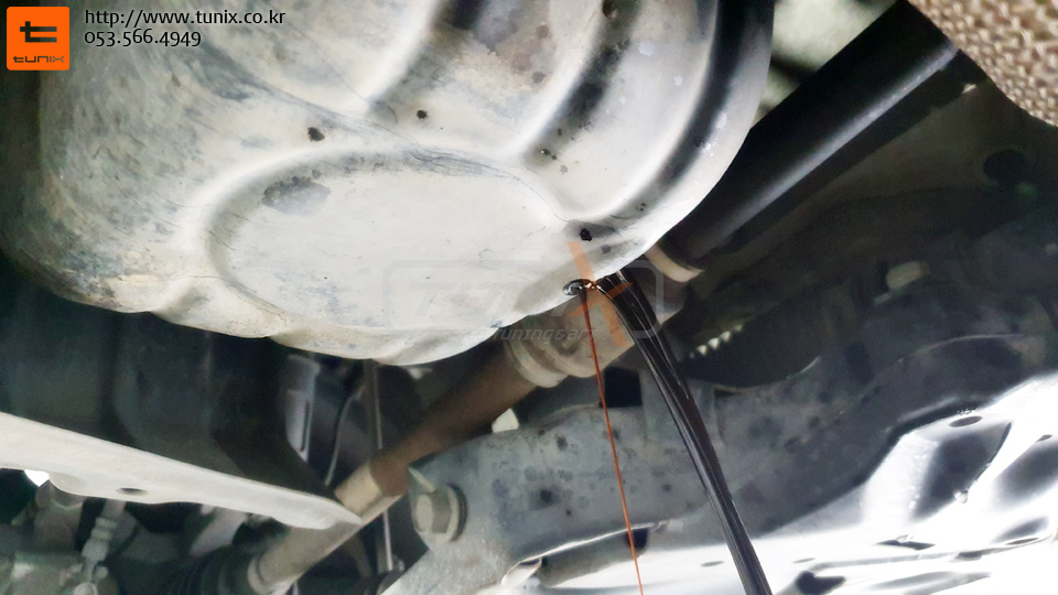 기존오일을 모두빼고 남아 있는 잔유는 전용드레인기를 이용하여 깔끔하게 제거해줍니다
