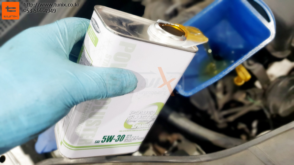 파클 스팽글 5W30을 정량에 맞게 넣어줍니다