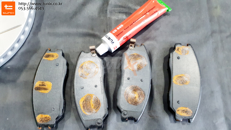 패드는 소음방지와 리턴에 도음을 주는 내열구리스를 도포해줍니다