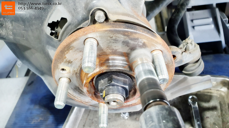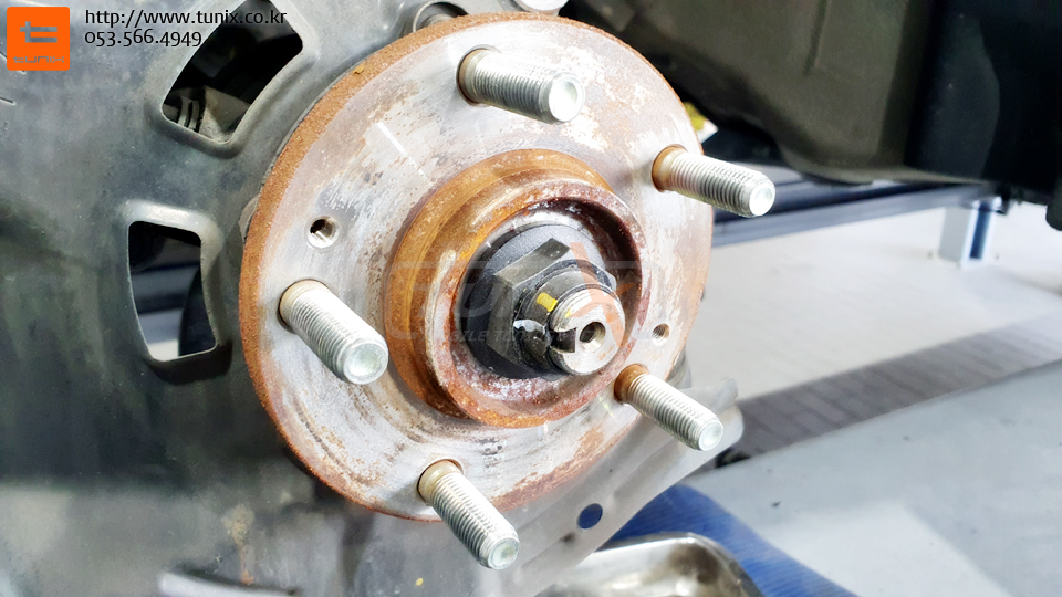 순정 브레이크를 탈착후 허브에 녹을 깨끗히 제거해줍니다