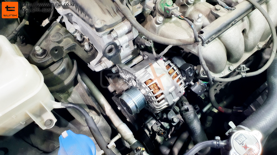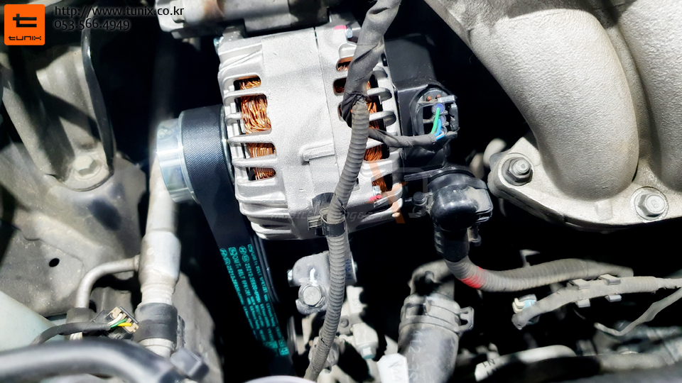 알터에 연결되어있는 커넥터 배선등을 먼저 탈착하고 벨트 장력을 느슨하게 해줍니다.