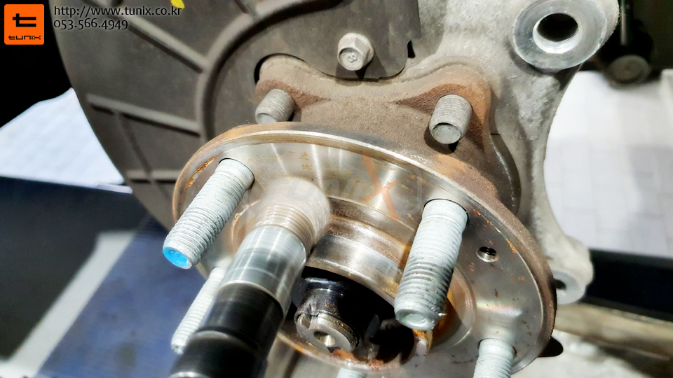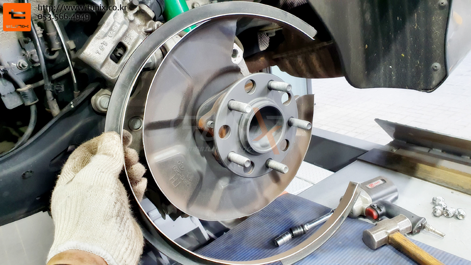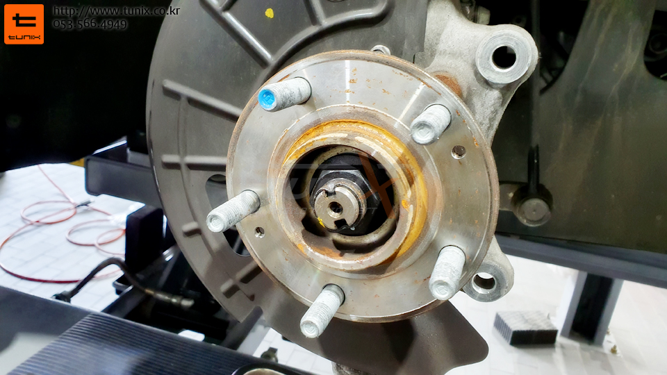 순정 브레이크를 탈착후 허브에 녹을 깨끗히 제거해줍니다