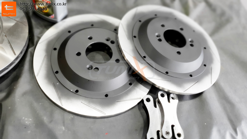 튜닉스에서는 355mm의 경우 추가금액없이 무상으로 핀방식에서 T핀-세미플로팅으로 업그레이드 해드립니다.