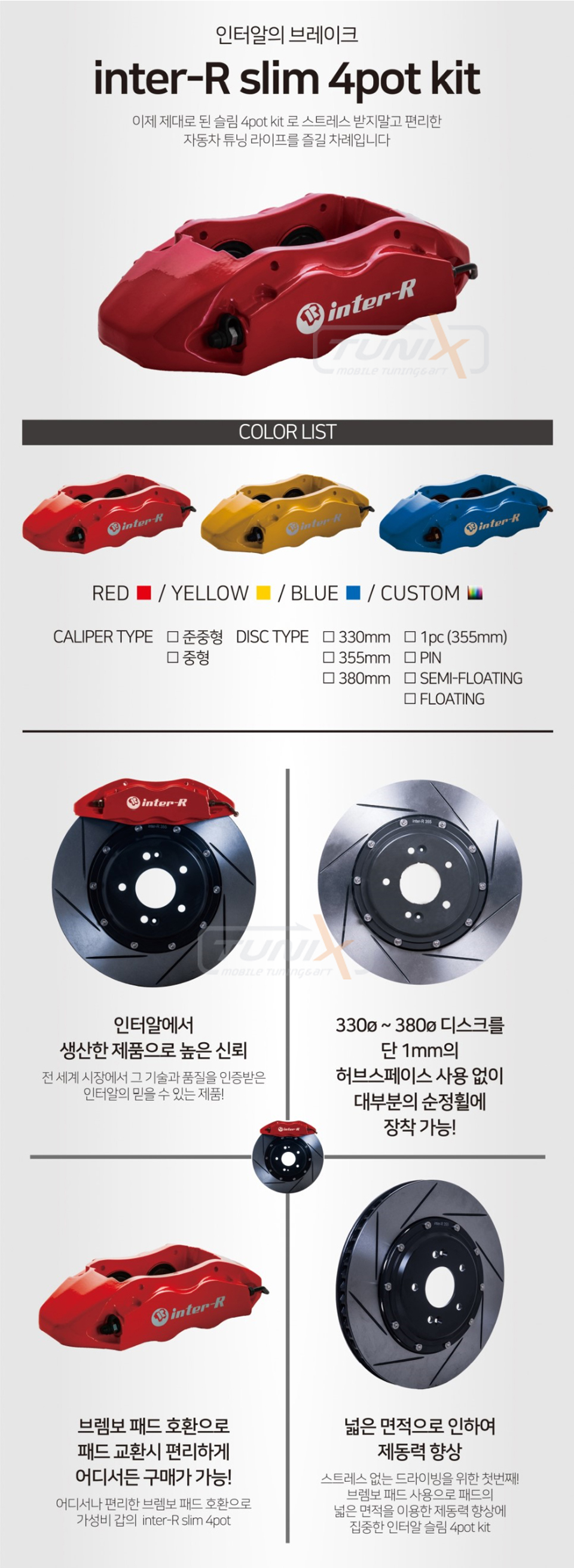 인터알 슬림4p는 튜닝인증 브레이크로 구조변경도 필요없고 단속(신고)에도 자유롭습니다