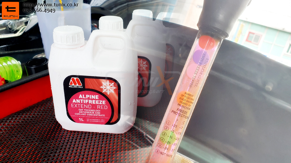 부동액은 밀러스 알파인 레드를 선택하셨습니다