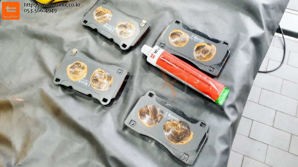 패드는 소음방지와 리턴에 도움을 주는 내열구리스를 도포해줍니다