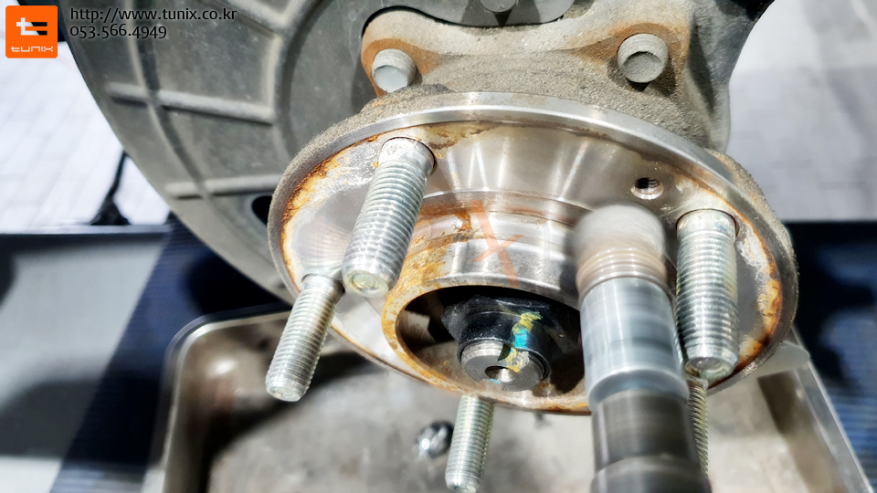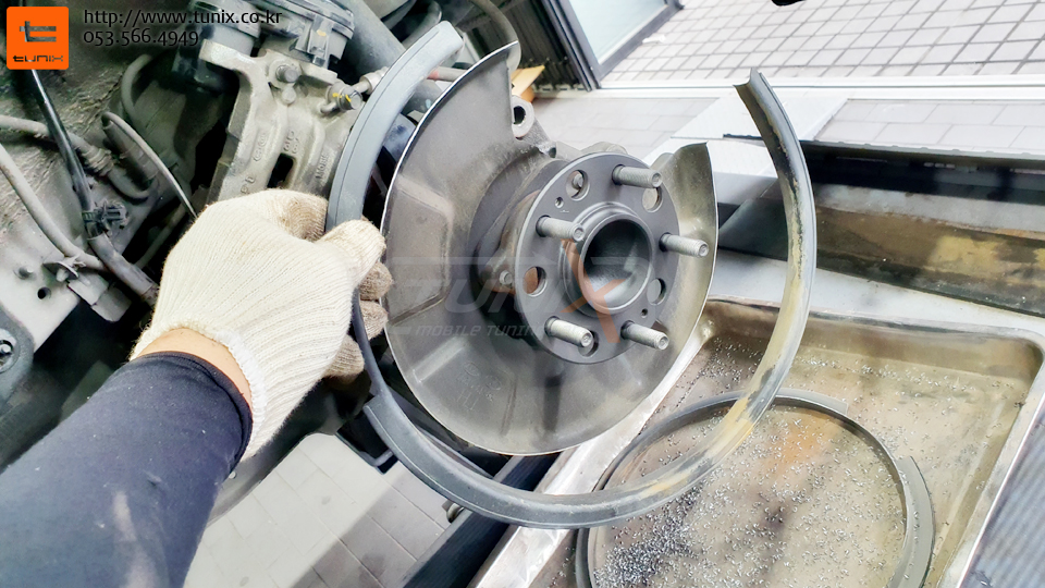 순정 브레이크를 탈착후 허브에 녹을 깨끗히 제거해줍니다
