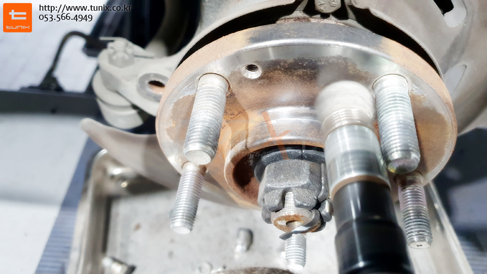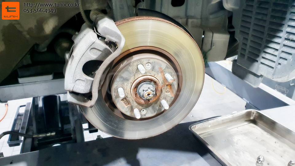 순정 브레이크를 탈착후 허브에 녹을 깨끗히 제거해줍니다