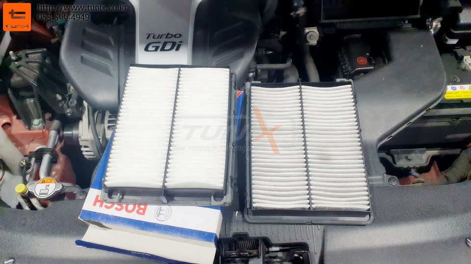 오염된 에어크리너와 오일필터를 교체해줍니다