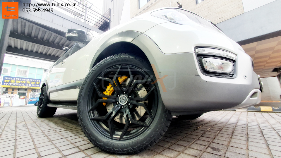 더뉴 모하비 차량이고 휠은 22인치 스파이더 휠이 장착되어 있어서 어떤 브레이크도 쉽게 들어갈수있네요