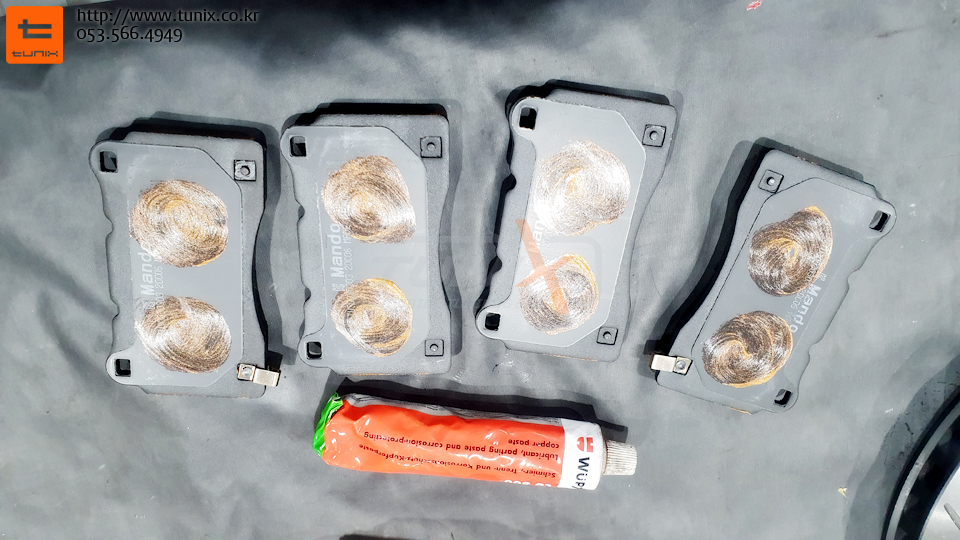 패드는 소음방지와 리턴에 도움을 주는 내열구리스를 도포해줍니다