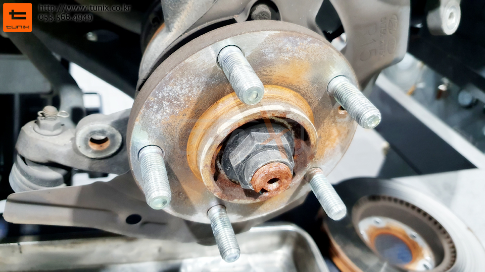 순정 브레이크를 탈착후 허브에 녹을 깨끗히 제거해줍니다