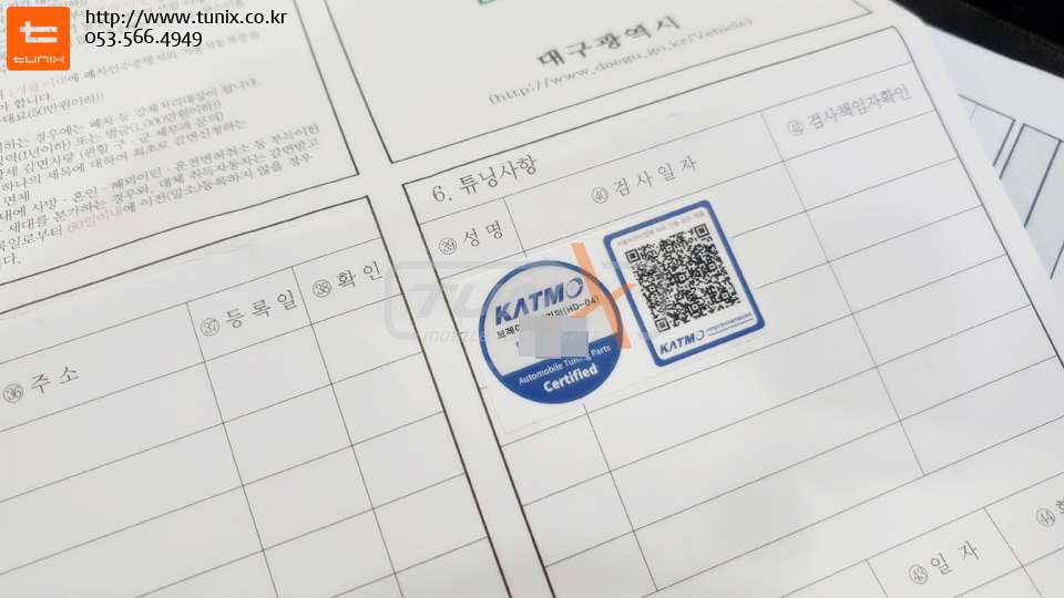 튜닝인증스티커입니다
