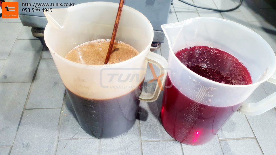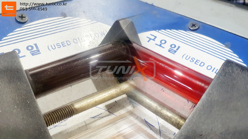 1차로 배출된 미션오일과 신유의 비교사진입니다..^^