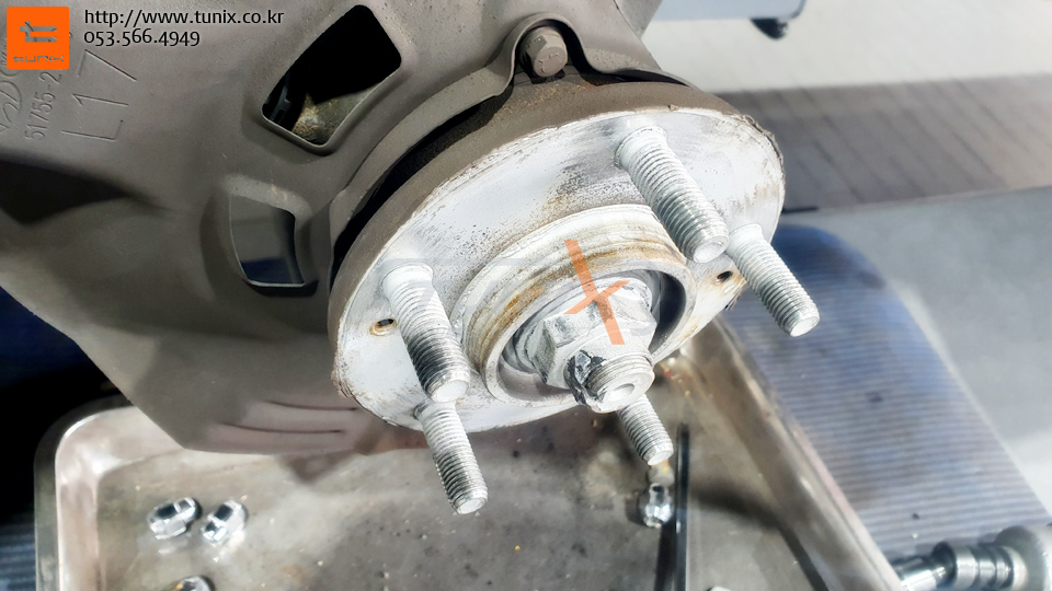 순정 브레이크를 탈착후 허브에 녹을 깨끗히 제거해줍니다