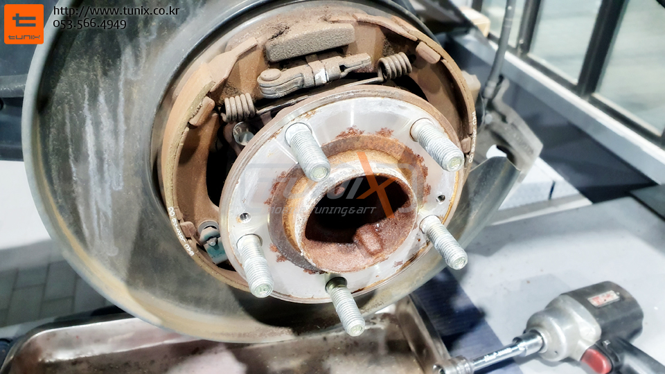 순정 브레이크를 탈착하고 허브에 녹까지 깨끗히 제거한후