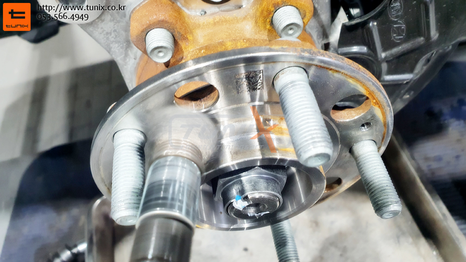 순정 브레이크를 탈착후 허브에 녹을 깨끗히 제거해줍니다