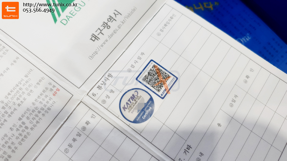 튜닝인증 스티커를 차량등록증에 붙이고 온라인등록하면 합법이 됩니다