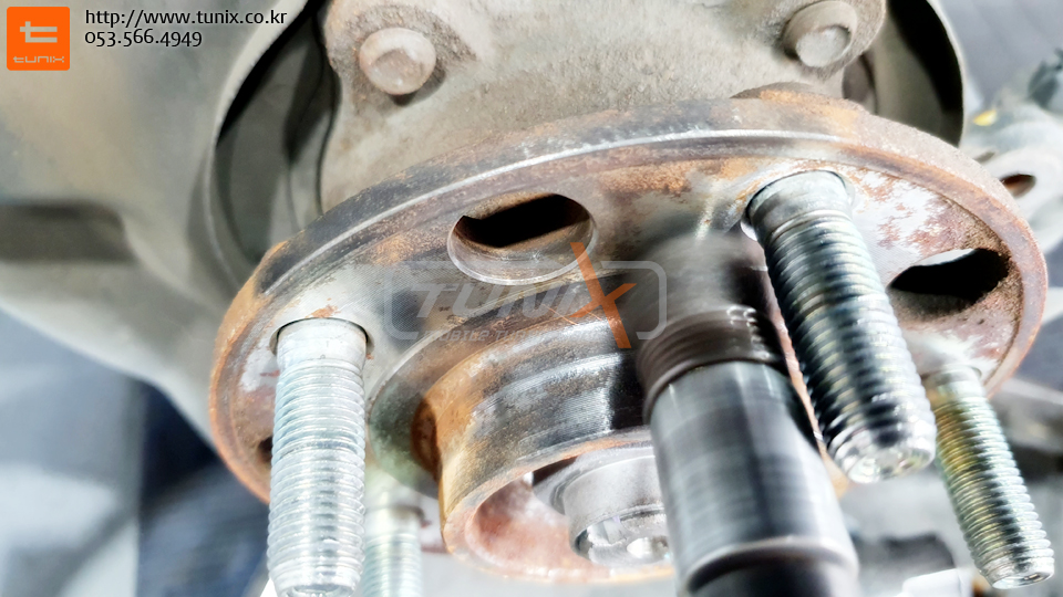 순정 브레이크를 탈착하고 허브에 녹까지 깨끗히 제거한후