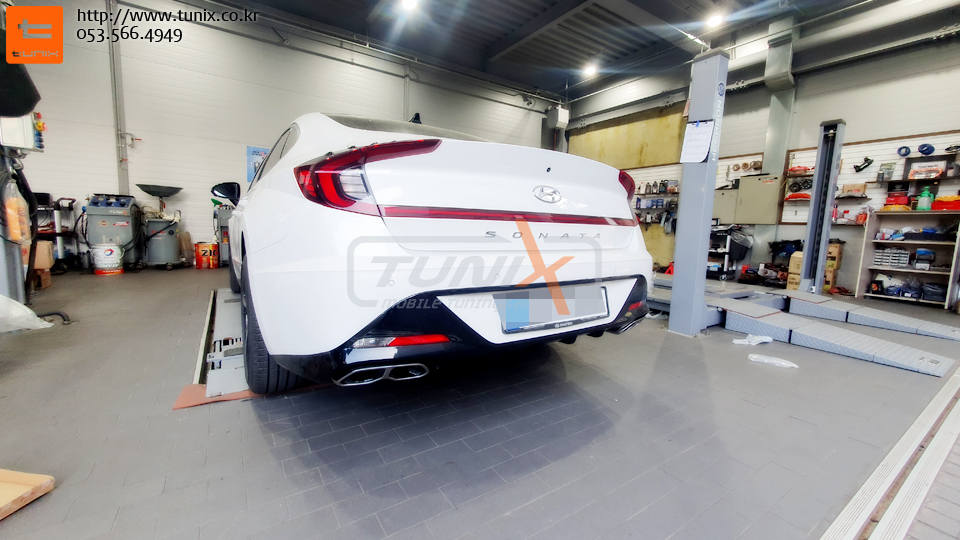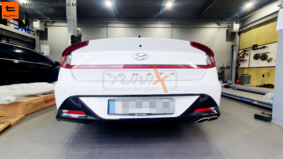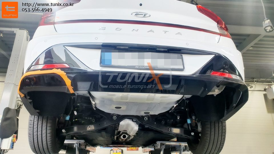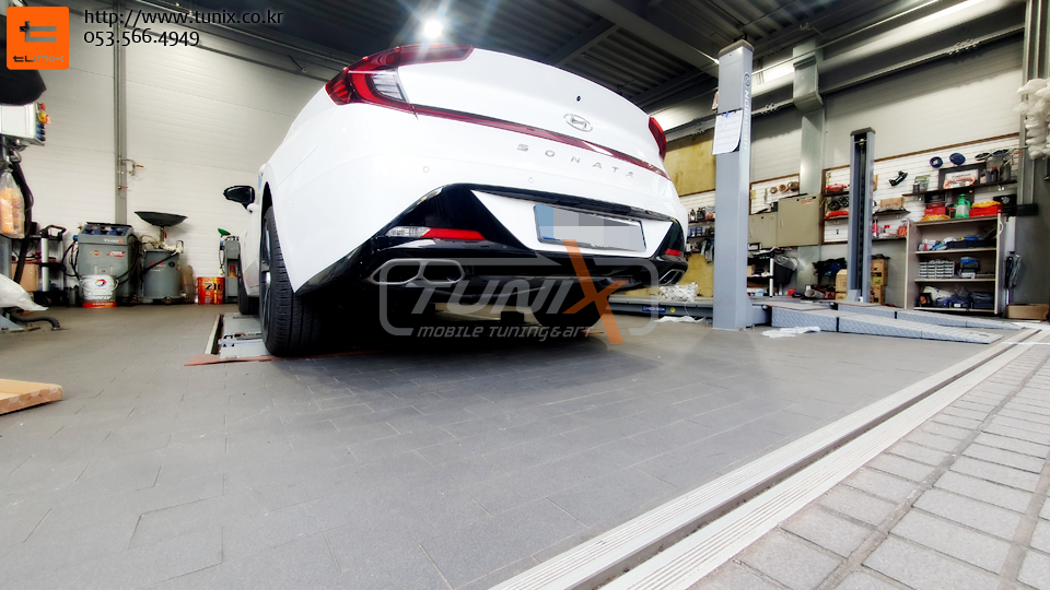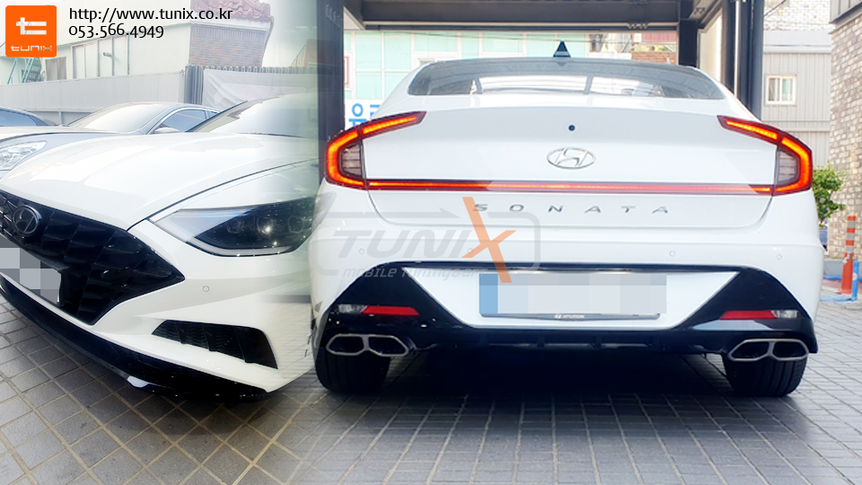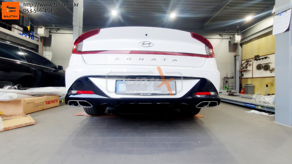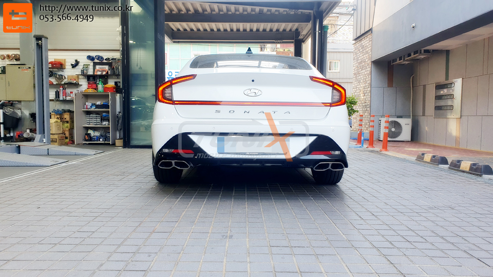 신형 쏘나타 센슈어스 N라인데 듀얼머플러가 장착되어서 출시됩니다