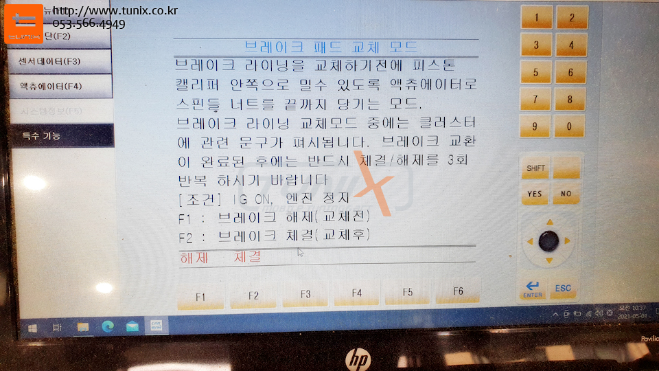 스캐너를 이용하여 패드 교체모드로 진입해줍니다