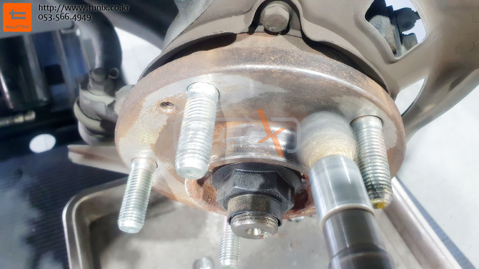 순정 브레이크를 탈착후 허브에 녹을 깨끗히 제거해줍니다