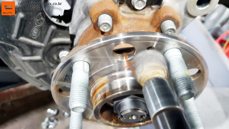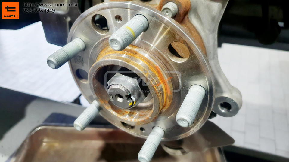 순정 브레이크를 탈착후 허브에 녹을 깨끗히 제거해줍니다