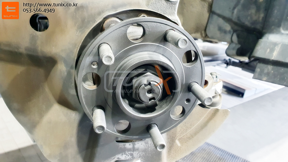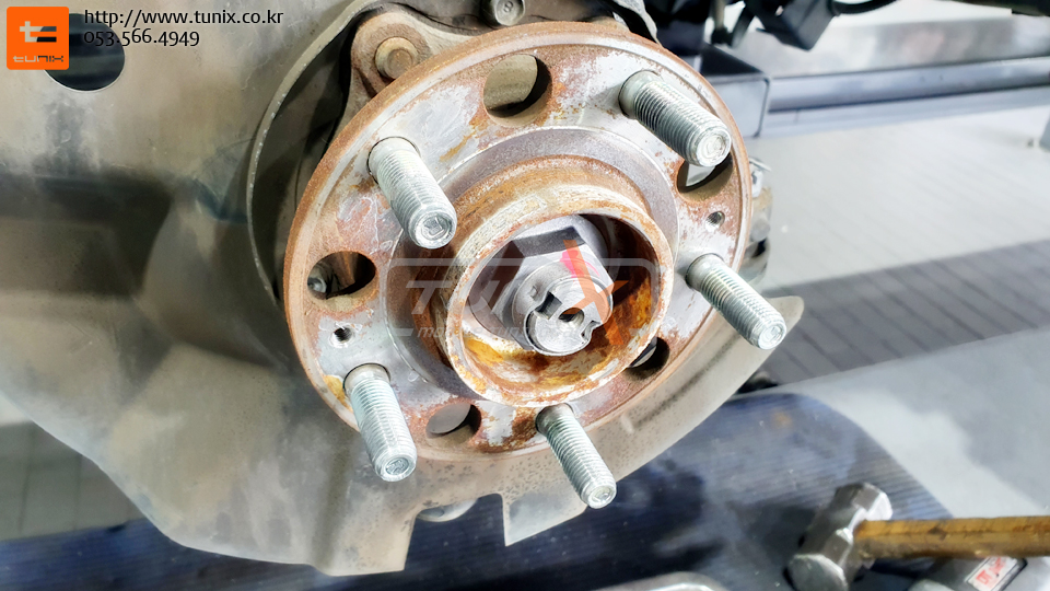 순정 브레이크를 탈착후 허브에 녹을 깨끗히 제거해줍니다