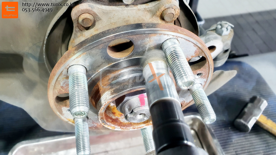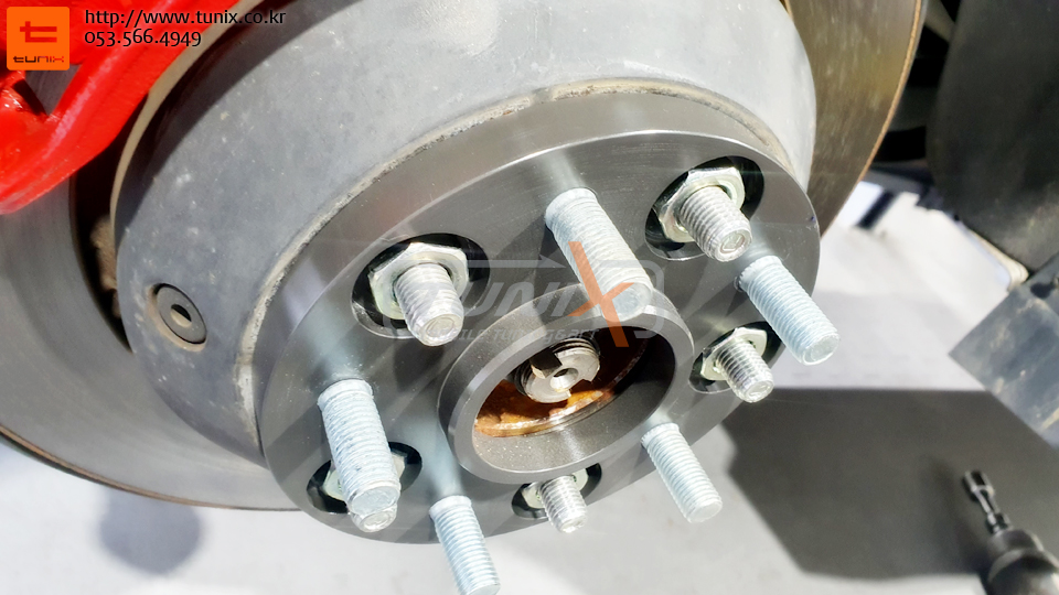 순정휠에 장착을위해서 볼트체결식 스페이스도 장착해야합니다