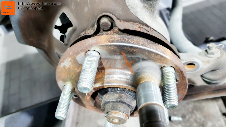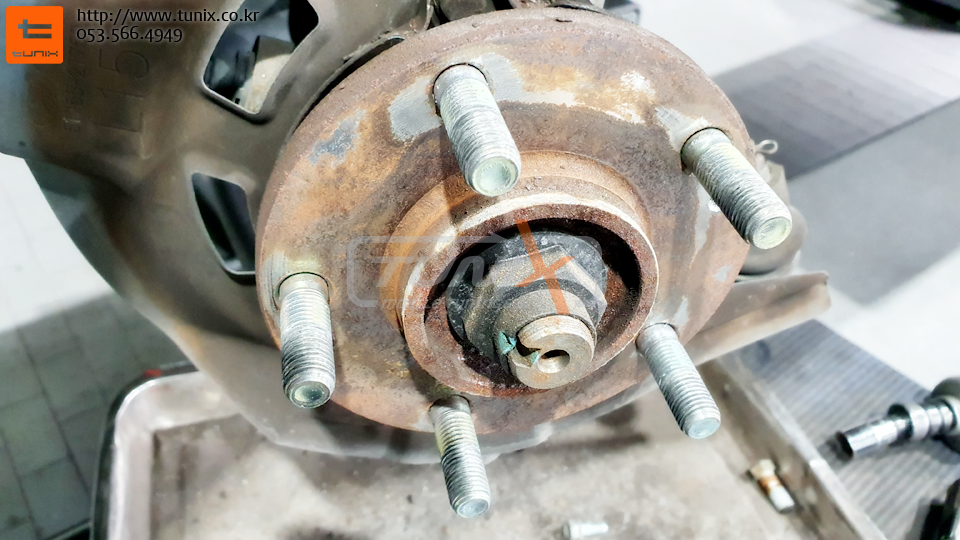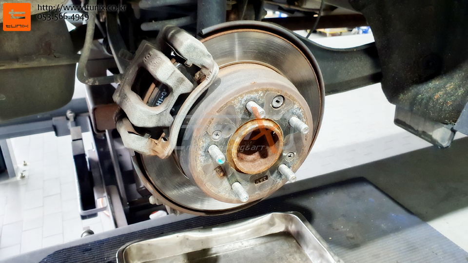 순정 브레이크를 탈착후 허브에 녹을 깨끗히 제거해줍니다