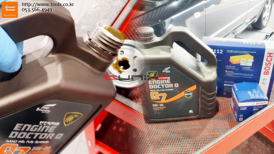 Q7을 넣고 일차시동후 레벨링까지 해주면 오일 교환작업이 완료됩니다