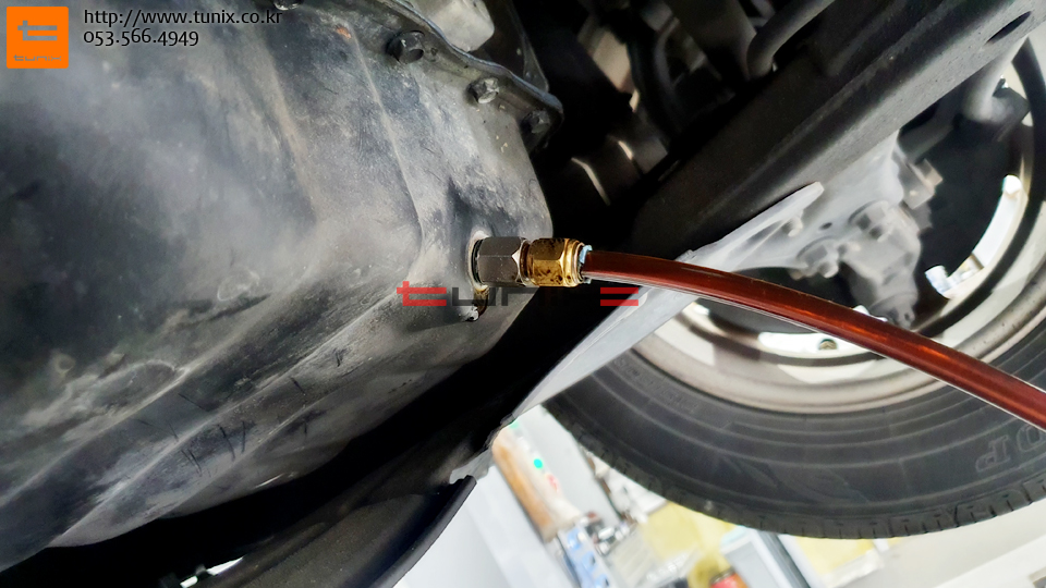 기존오일을 모두빼고 남아 있는 잔유는 전용드레인기를 이용하여 깔끔하게 제거해줍니다