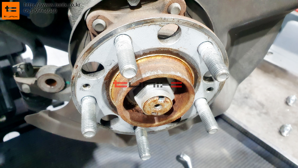 순정 브레이크를 탈착후 허브에 녹을 깨끗히 제거해줍니다