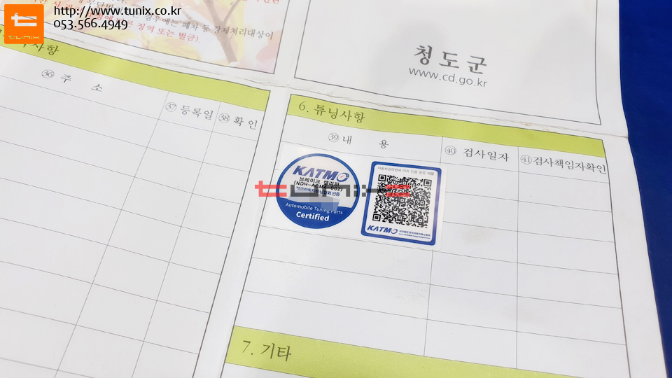 튜닝인증스티커를 사진처럼 차량등록증에 붙이고