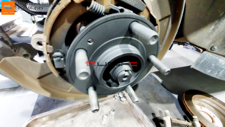 순정 브레이크를 탈착하고 허브에 녹까지 깨끗히 제거한후