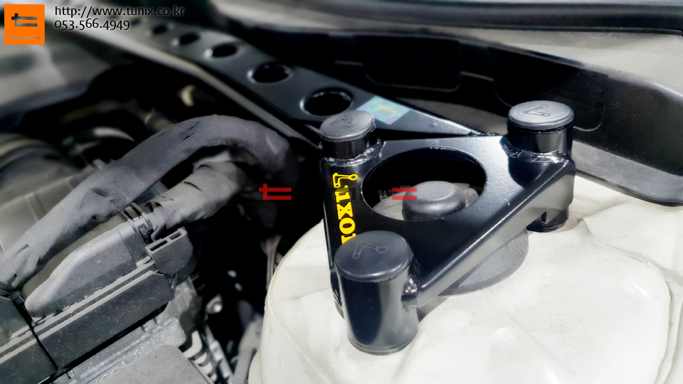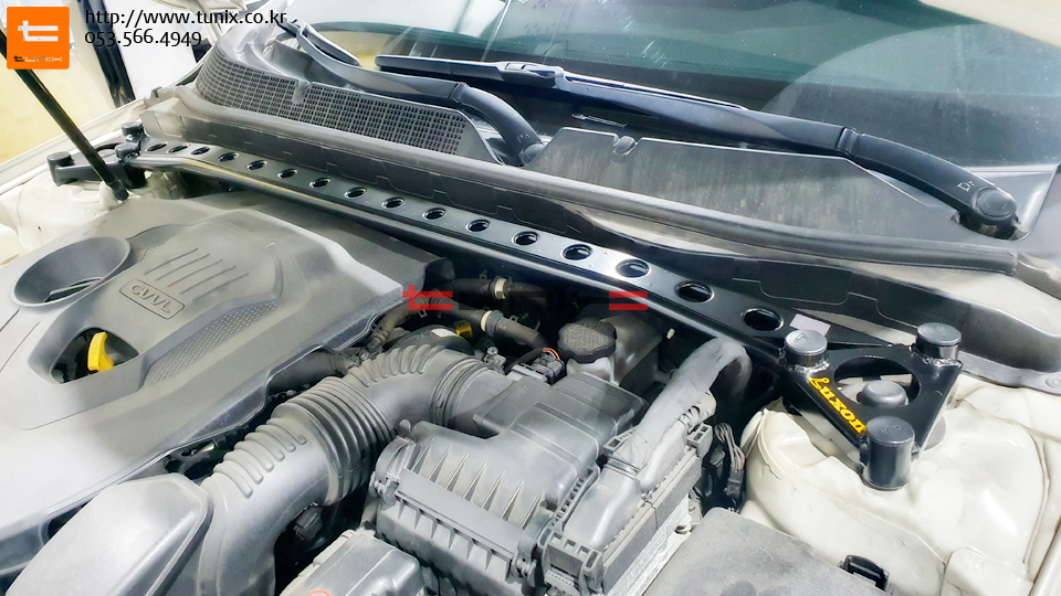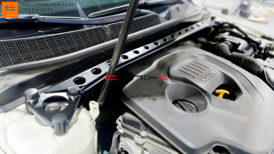 엔진룸에 토크렌치를 사용하여 스트럿바를 장착해줍니다