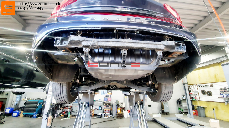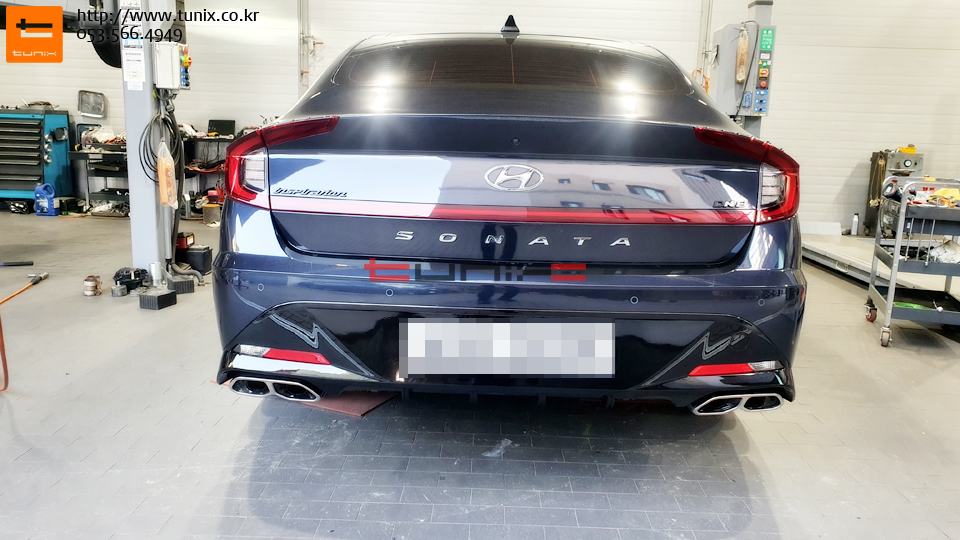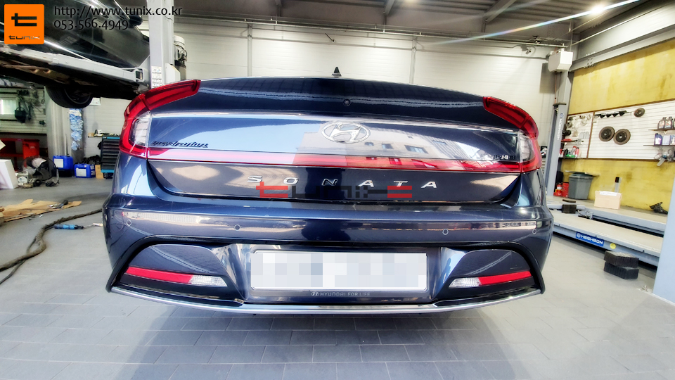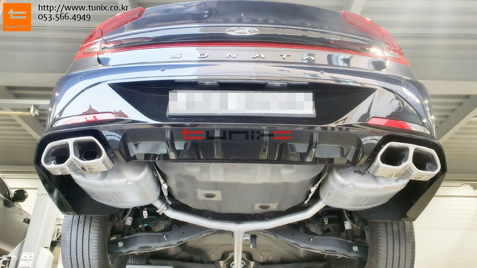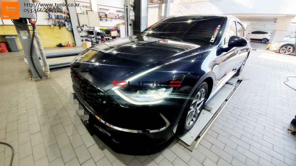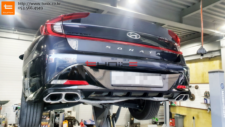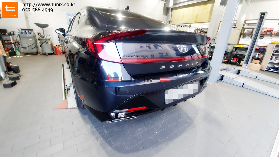 쏘나타 DN8차량입니다 순정듀얼머플러 장착을 위해서 튜닉스에 방문하였습니다