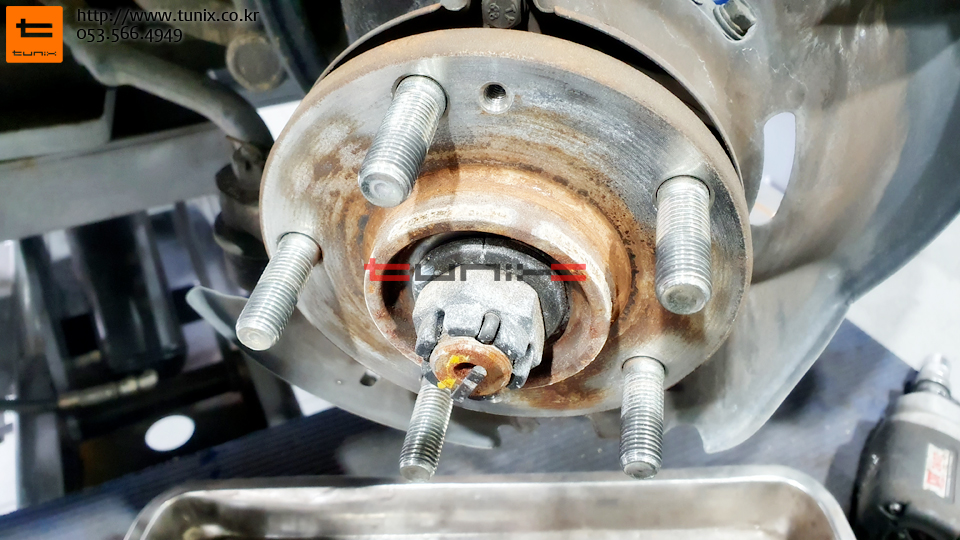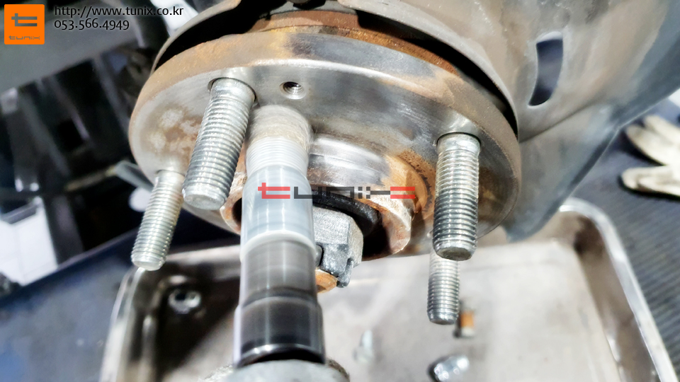 순정 브레이크를 탈착후 허브에 녹을 깨끗히 제거해줍니다