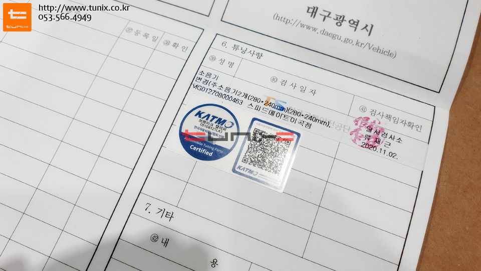 튜닝인증 스티커입니다