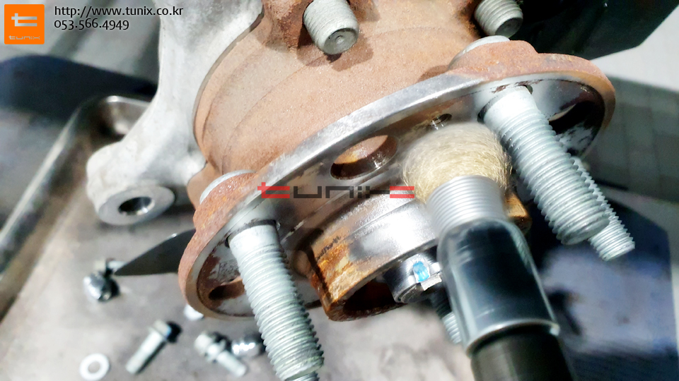순정 브레이크를 탈착후 허브에 녹을 깨끗히 제거해줍니다