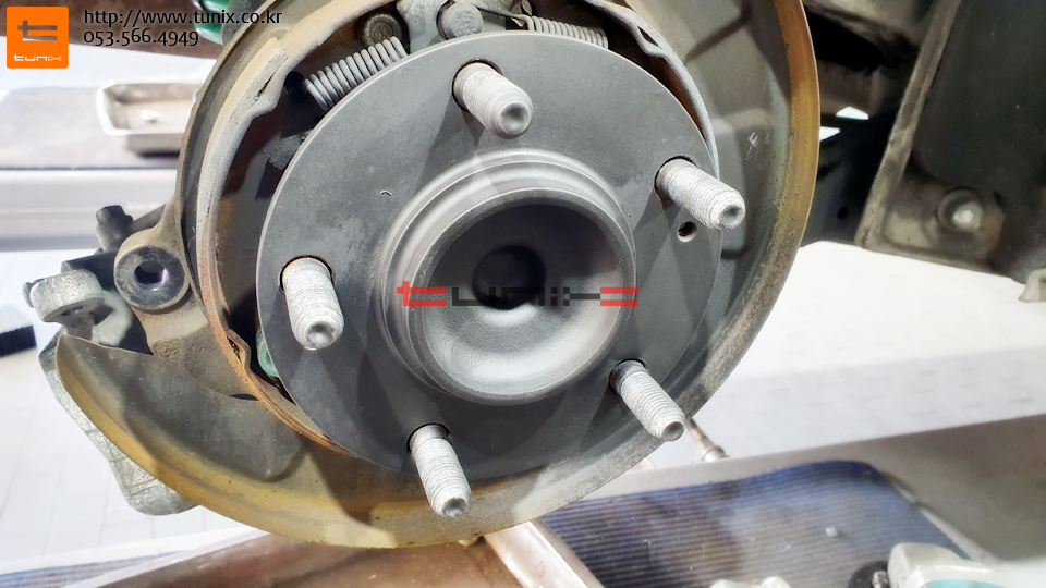 순정 디스크를 탈착후 허브에 녹을 깨끗히 제거해줍니다