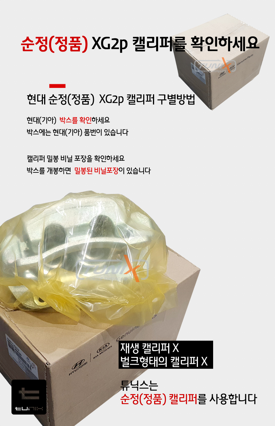순정캘리퍼 수급이 잘안되서 벌크 재생을 많이 사용하지만 튜닉스는 순정캘리퍼만 사용합니다