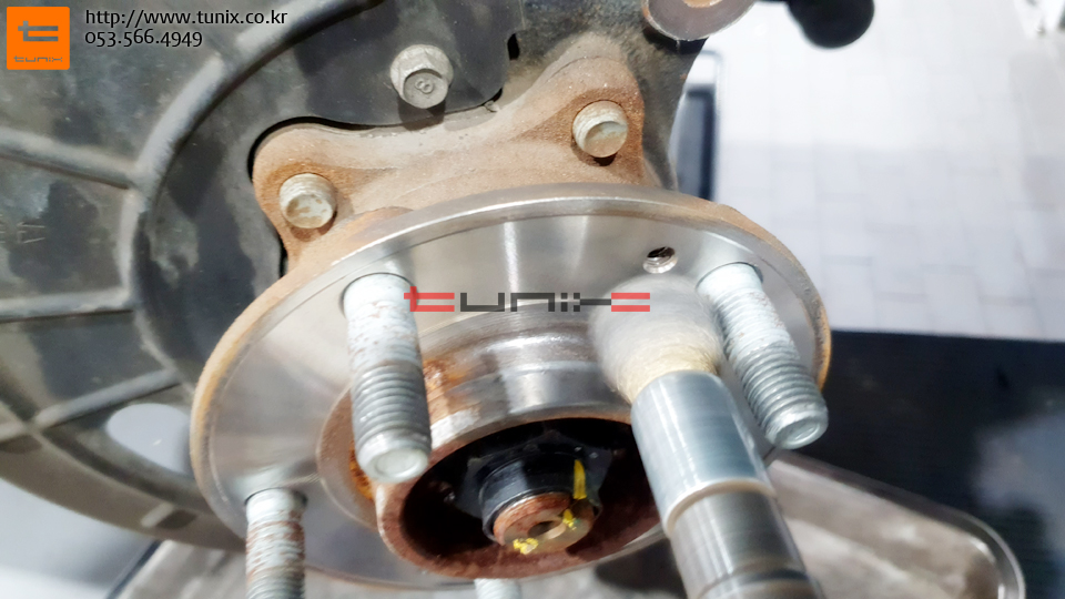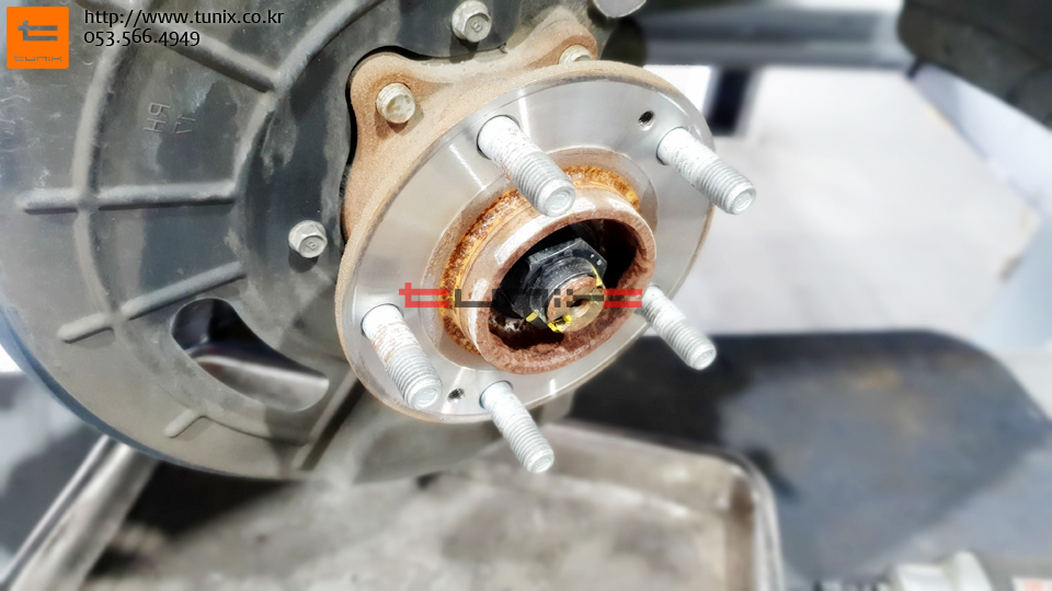 순정 브레이크를 탈착후 허브에 녹을 깨끗히 제거해줍니다