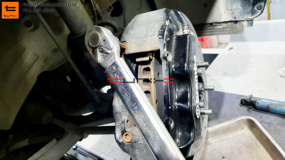 탈착한 캘리퍼 장착시 볼트본드와 토크렌치를 장착해줍니다